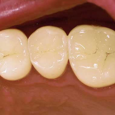Die Krone ist eine „Kappe“ auf einem zerstörten Restzahn, die die verbliebene Zahnhartsubstanz stabilisiert. Die Krone gibt dem Zahn seine ursprüngliche Form zurück.