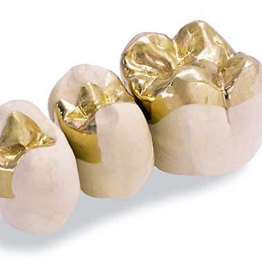 Wenn nur Teile eines Zahnes defekt sind, kann er mit Inlays, Onlays oder Teilkronen versorgt werden. Diese Einlagefüllungen werden im zahntechnischen Fachlabor individuell angefertigt. Sie können in einer hochgoldhaltigen Edelmetalllegierung oder in zahnfarbener Vollkeramik gearbeitet werden. Vollkeramische Inlays bedeuten ein Höchstmaß an Funktionalität und Ästhetik, da die Füllung nahezu unsichtbar bleibt.